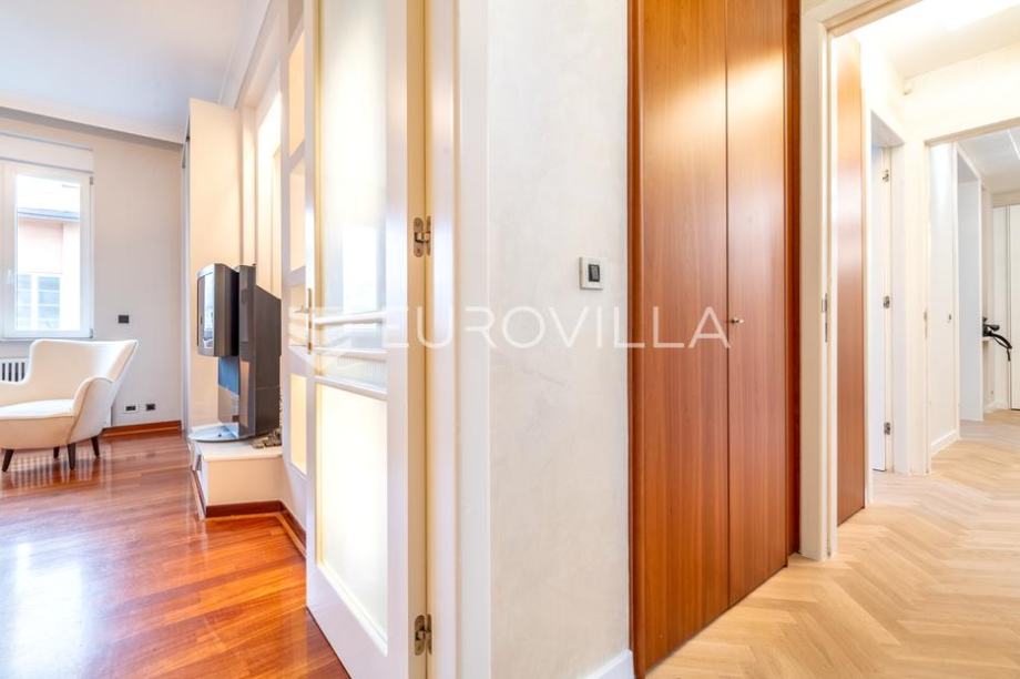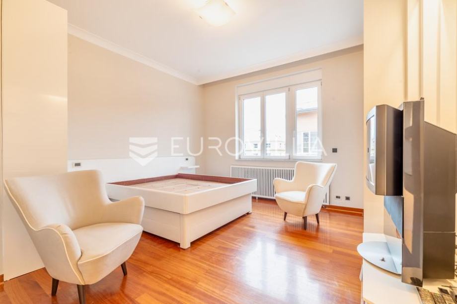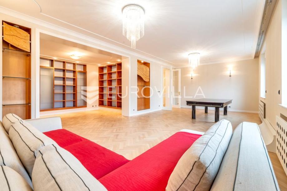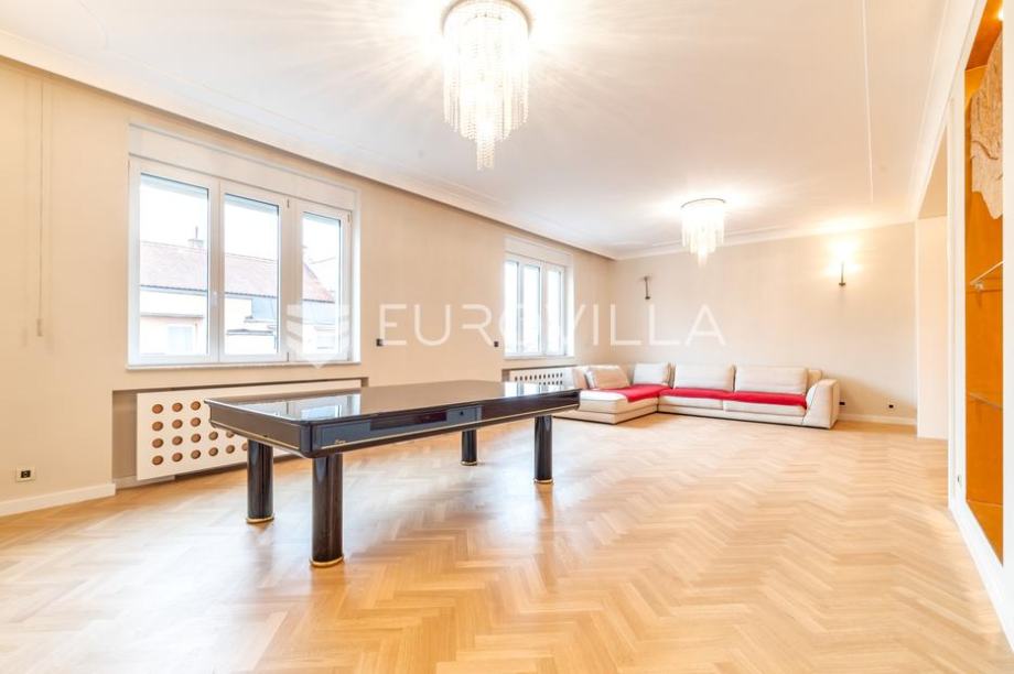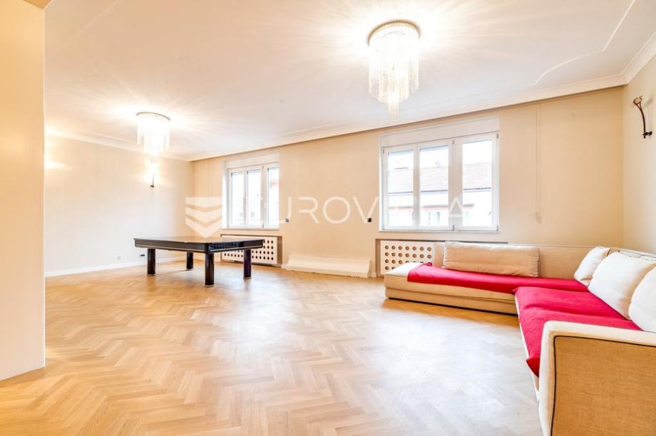 Zagreb, Ban Josipa Jelačić Square, spacious two-bedroom apartment with a gross floor area of 160 m2 with an outdoor parking space. Located on the 4th floor of an excellent building built in 1938. Extremely high-quality construction, concrete floor, impressive staircase, elevator. It consists of...