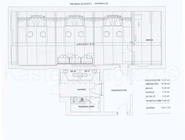 Zagreb, Trg bana Jelačića, luksuzni uredski prostor, 110 m2, četvrti kat, lift. Sastoji se od predprostora, ureda, arhive, tehničke sobe, kuhinje i toaleta. Oprema, završna obrada prostorija je suvremena, uz očuvan duh originalnog prostora. Mogućnost najma i više kvadrata.