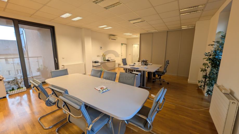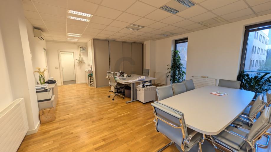 Zagreb, Trnje - poslovni prostor od 75,32 m2, koji se nalazi na drugom katu stambeno poslovne zgrade od osam katova, s liftom. Dodatno mu pripada i garažno parkirno mjesto od 10,11 m2 (koje je uključeno u cijenu). Prostor se sastoji od dvije prostorije, lođe, kuhinje i toaleta. Orijentiran je dvostrano, na sjever i na jug tako da je vrlo svijetao. U prostor nije potrebno dodatno ulagati jer je u potpunosti uređen, a zgrada je novijeg datuma i izuzetne kvalitete.