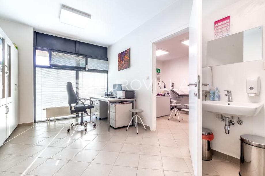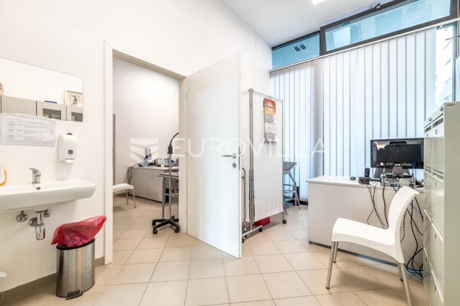Zagreb, Trnje, commercial space on the ground floor of a residential and commercial building with a total net usable area of 136 m2 with the associated parts of two outdoor parking lots (4.6 m2) totaling 140 m2.Consists of an open space room (waiting room), several smaller offices, a kitchen and a...