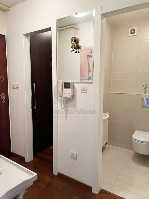 Od opreme stan ima i klima uređaj, video portafon te protuprovalna vrata. Sva su brojila odvojena. Riječ je stanu u kojem će Vam režijski troškovi biti zadivljujuće mali. U potpunosti je namješten i kao takav je na prodaju.