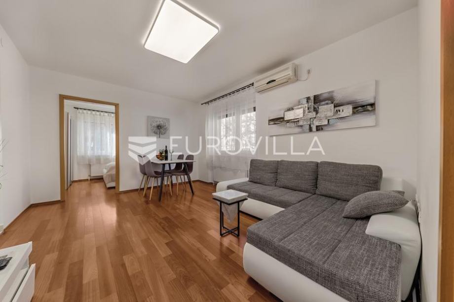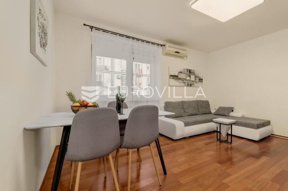 Novi Zagreb, Trnsko, modern and fully furnished two-bedroom apartment on the first floor of a well-maintained older building. It consists of an entrance hall, kitchen, dining room, living room, bathroom, and two bedrooms.It is located in a busy location, close to public transport, shops, schools...
