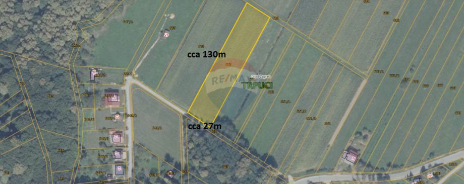 Širina parcele uz cestu je cca 27m, a duljina cca 130m.
