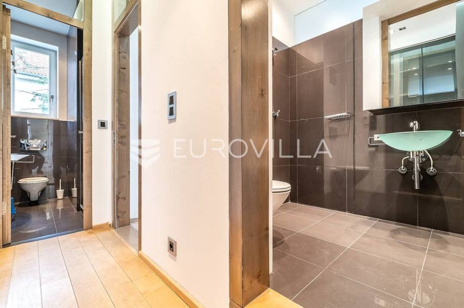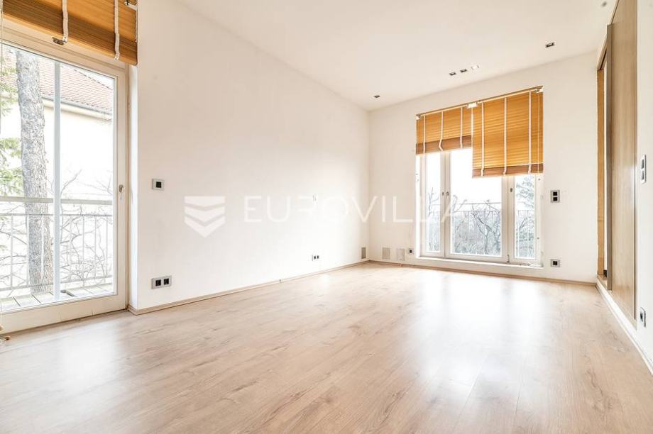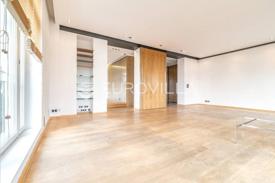 Visina stropa 310 cm, nova vanjska stolarija, alarm, protuprovalna vrata, centralno etažno plinsko grijanje. Jedini naetaži, orijentiran na sve 4 strane svijeta. Samo 3 min pješice do Britanskog trga ili stepenicama do Dežmanovog prolaza, garaže Tuškanac. Prostor se iznajmljuje nenamješten.