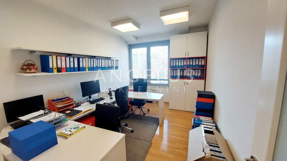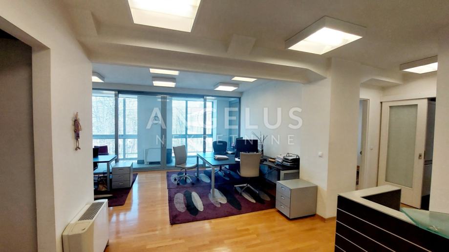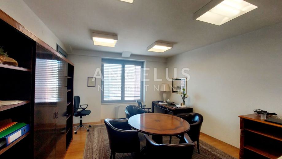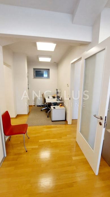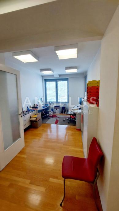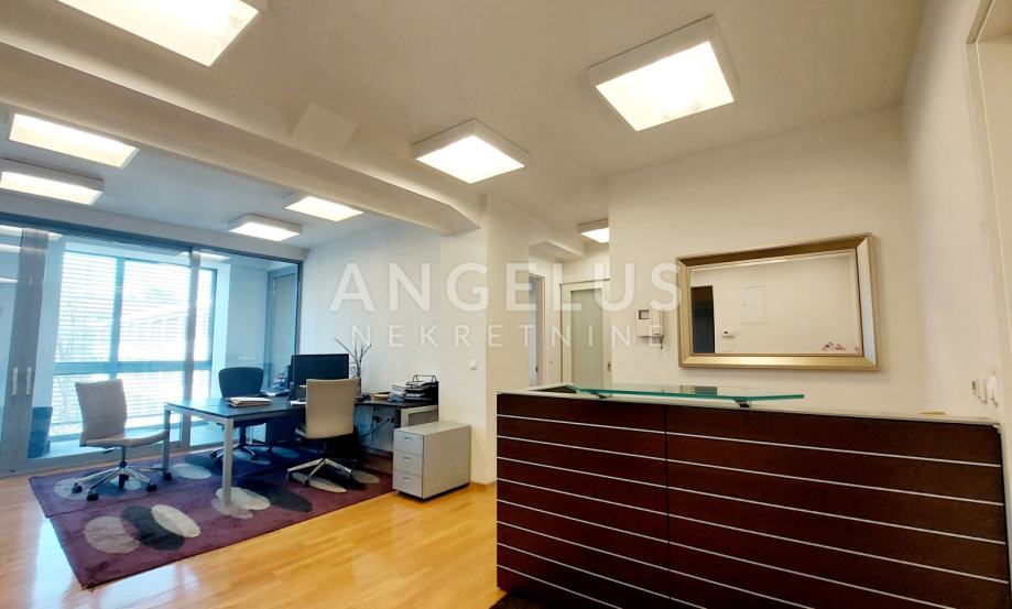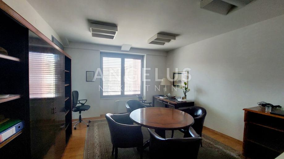 Poslovni prostor sastoji se od dvije spojene jedinice, time ima i dva ulaza. Centralni prostor sastoji se od ulaznog halla s mjestom za recepciju / sekretaricu te većeg radnog prostora s tri stola koji gleda na loggiu. Hodnikom se ide do još dva odvojena prostora s radnim stolovima. Prostor ima i široku, ukusno uređenu sobu za sastanke i odlično opremljenu, odvojenu kuhinju s izlazom na natkrivenu terasu, te dva velika kupatila.