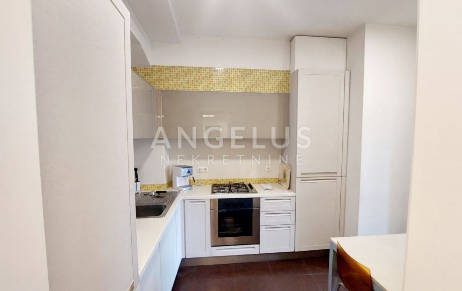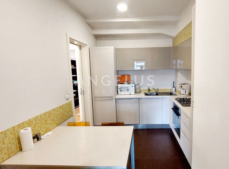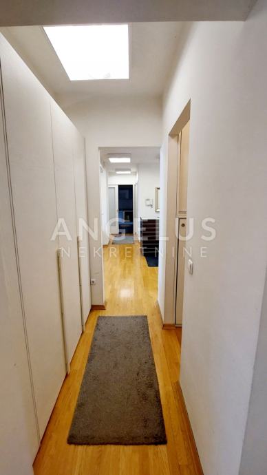 U novijoj zgradi s liftom, nalazi se garaža u podrumu u kojoj su osigurana tri parkirna mjesta. Prostoru pripada zatvorena loggia kao i natkrivena terasa od 16m2.