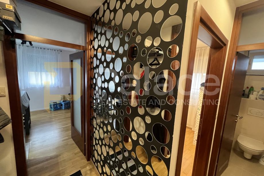 Stan se sastoji od hodnika, dvije spavaće sobe, kupaone, toaleta, dnevnog boravka s kuhinjom i blagovaonom. Stanu pripadaju dvije velike terase 35+20m2 s prekrasnim pogledom, ostava i parkirno mjesto.