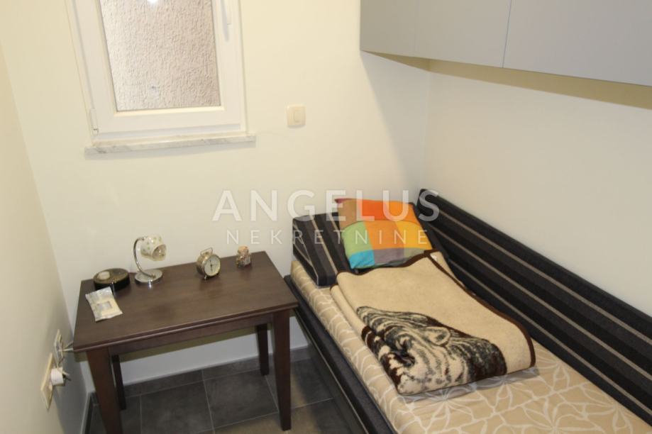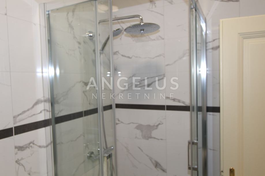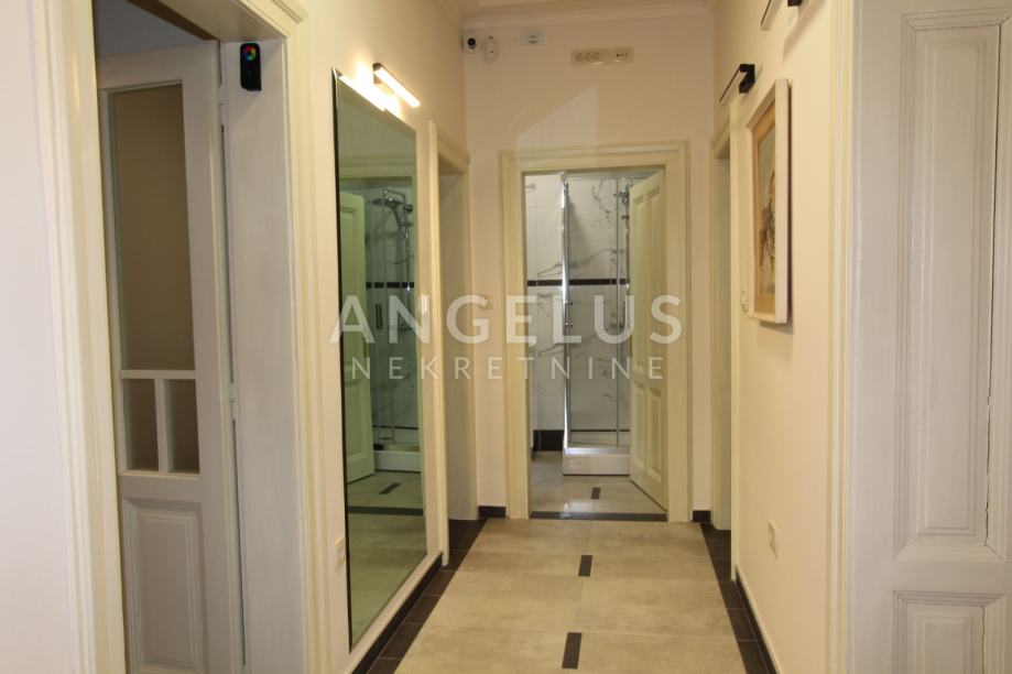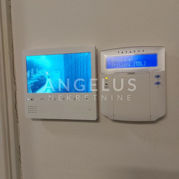 Iz hodnika se ulazi u sve prostorije. Stan je opremljen šifriranim ulazom, alarmom, videoportafonom, 3 TV prijamnika, najmanje po dvije utičnice na svakom zidu, potpuno novom kuhinjom po mjeri sa svim aparatima, kupaonicom u tuš kabinom te novim bojlerom od 80l, električne rolete na svim prozorima.