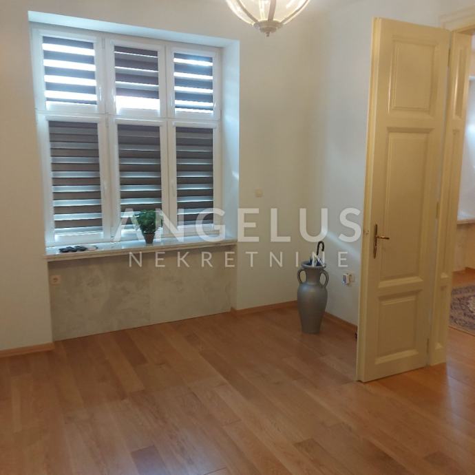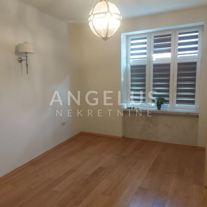 Iznajmljuje se potpuno renoviran dvo i pol sobni stan u visokom prizemlju zgrade od 2. kata koji se sastoji od hodnika, kuhinje s blagovaonicom, dnevne sobe, spavaće i radne sobe, kupaonice i ostave.