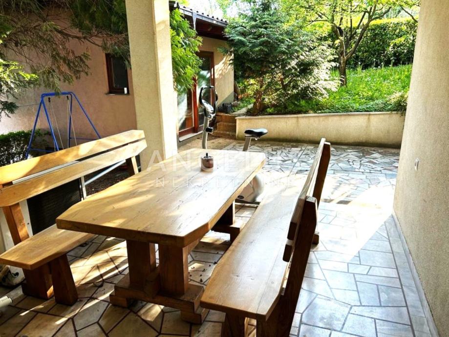 Okućnica je uređena i održavana a s unutrašnje strane nalazi se popločena terasa i vrtna kućica s roštiljem okružena zelenilom i savršena za bijeg od ljetnih vrućina. Ovu kuću svakako vrijedi pogledati.