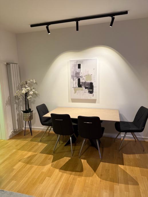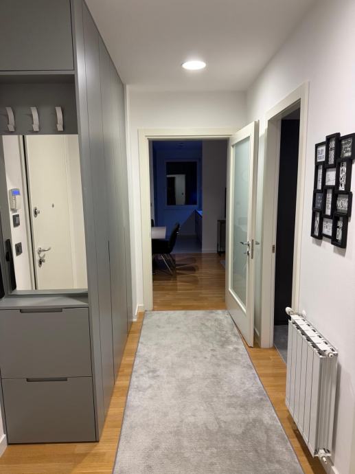 Strojarska, potpuno uređen i moderno namješten luksuzni trosoban stan zatvorene površine 70 m2 na drugom katu VMD kvarta stambene zgrade. Stan se sastoji od ulaznog hodnika s ugradbenim ormarima, open space dnevnog boravka zajedno s kuhinjom i blagovaonicom, dvije spavaće sobe, jednom kupaonicom, walk in soba i lođa. Stanu pripada zatvoreno garažno mjesto 16.40 m2.