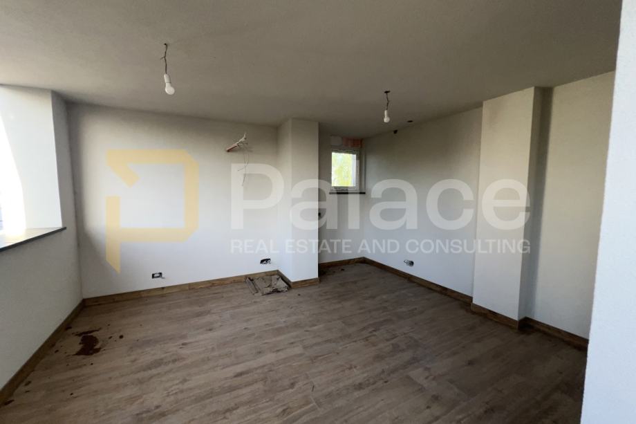 Prizemlje je stana je u open space varijanti tj. veliki dnevni boravak s kuhinjom i blagovaonom, toalet s umivaonikom.