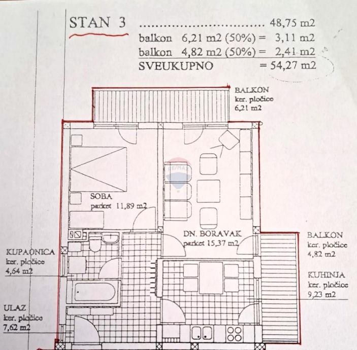 U cijenu je uključeno i vanjsko parkirno mjesto u dvorištu zgrade, površine 11,5 m2.