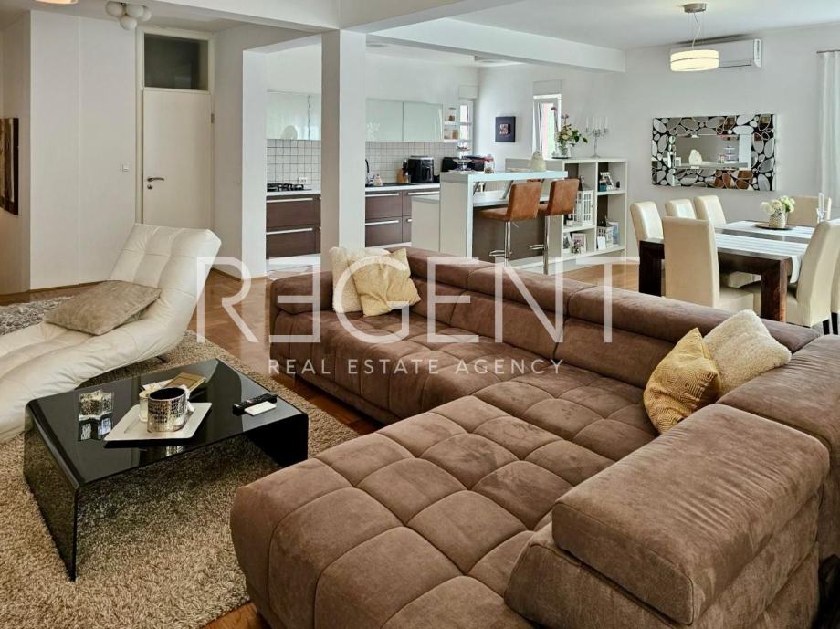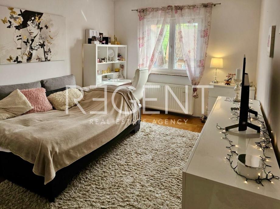 Na prodaju je četverosoban stan na prvoj etaži zgrade iz 2006. godine, 800 m od Ilice. Nekretnina je prikladna za obitelji koje žele mir i privatnost uz mogućnost korištenja velikog voćnjaka odmah uz zgradu.Stan od 143 m² sastoji se od ulaznog prostora, nekoliko stepenica prema dnevnom „open space“ prostoru od 65 m² s kuhinjom, blagovaonicom, dnevnim boravkom i ostavom te izlazom na lođu. U donjem dijelu nalaze se tri spavaće sobe, dvije s lođom, te dvije kupaonice (jedna s masažnom kadom, druga s tuš kabinom). Stanu pripada i garaža od 18 m² i dva spremišta od 21 m². Stan ima energetski razred A, grijanje je etažno plinsko centralno, ugrađeni su PVC prozori, uvedena je dvostruka optička nit za internet.Lokacija je mirna, u slijepoj ulici. U blizini su autobusna stanica, škola, vrtić, dom zdravlja, nova tržnica te trgovine i ugostiteljski sadržaji. Uz zgradu se nalazi ograđen voćnjak od gotovo 1000 m² s dugogodišnjim stablima, sjenicom, pomoćnim objektima i dva betonska platoa (cca 100 m²), od kojih je jedan predviđen za bazen.Stan se prodaje nenamješten, a u prostoru ostaju samo ugradbeni ormari i kuhinja.Za više informacija ili dogovor oko razgledavanja, slobodno nas kontaktirajte.Za više informacija, kontaktirajte našeg agenta na brojeve telefona: