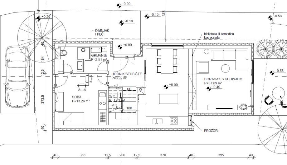 Na vizualizaciji je prikazano jedno parkirno mjesto, ali zapravo je moguć smještaj dva do tri automobila na parceli.