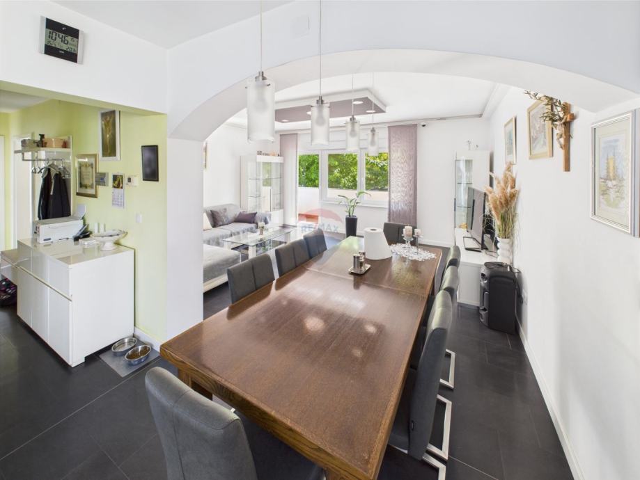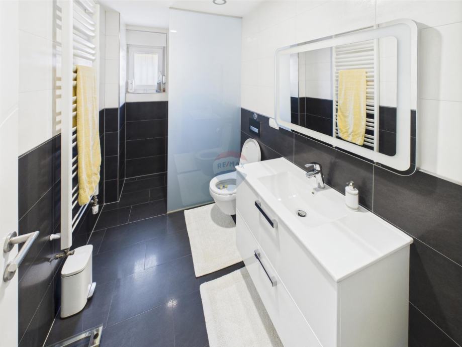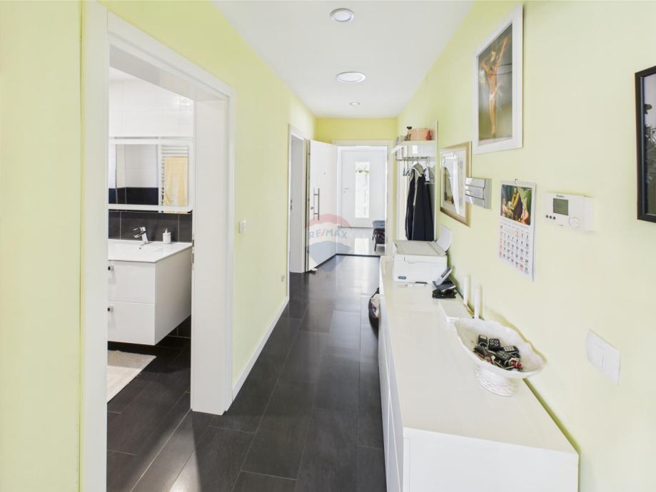 Stan u prizemlju se sastoji od ulaznog hodnika, dvije spavaće sobe, open space dnevnog boravka sa modernom kuhinjom i blagovaonom, kupaonice te dva balkona u sklopu stana se nalazi i prostrana garaža gdje bez problema se mogu parkirati dva vozila, terasa.