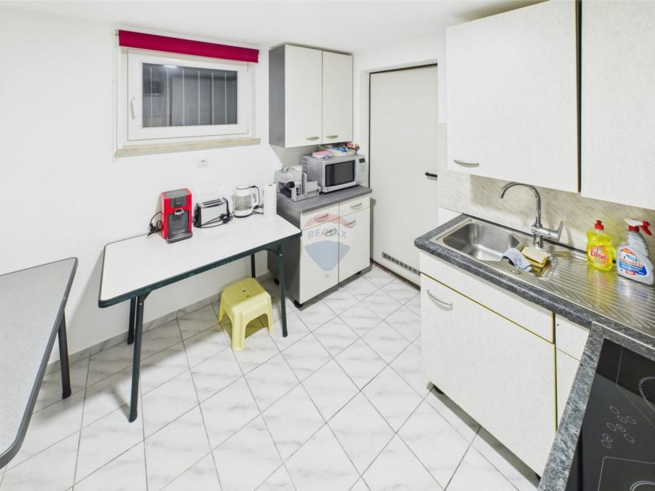 Suteren se sastoji od ulaznog hodnika, dvije spavaće sobe, dnevnog boravka, kuhinje, kupaonice, smočnice, zajedničke prostorije te kotlovnice (praonice), ukupne korisne površine 77 m2.