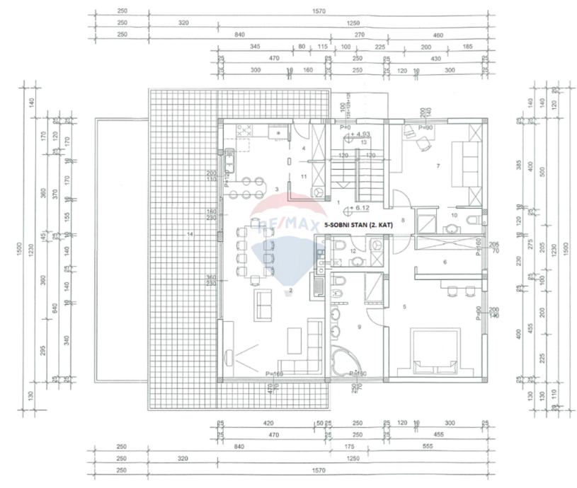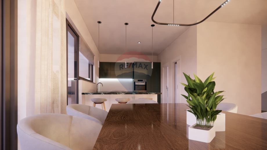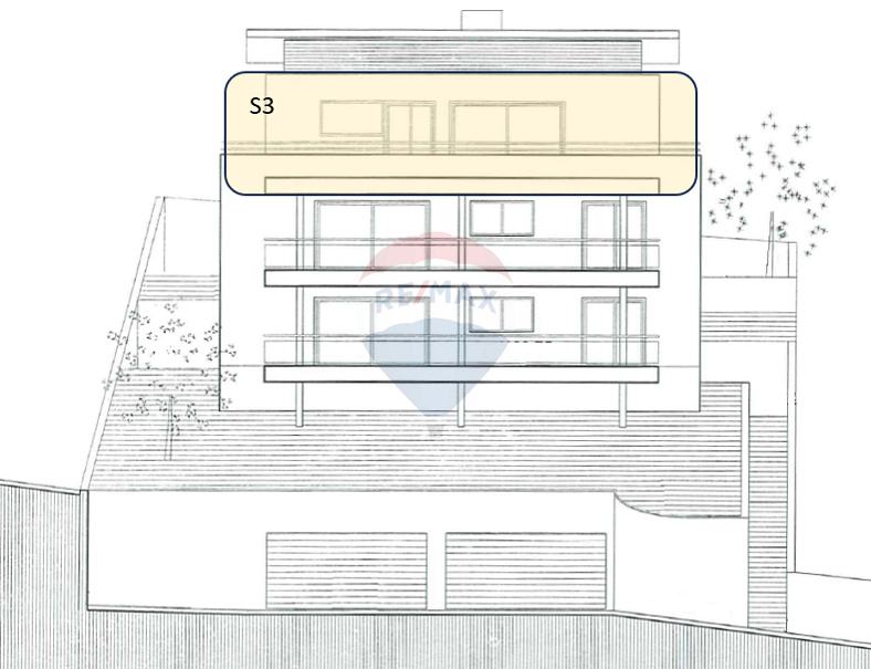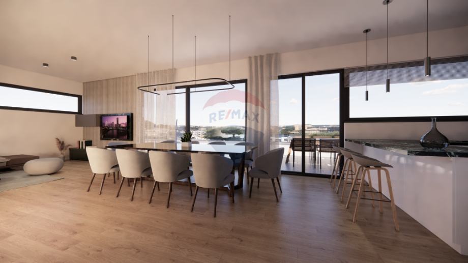 Peterosobni dvoetažni penthouse nalazi se na prvom katu te se nastavlja vlastitim stepeništem prema drugom katu, orijentiran je na sve četiri strane svijeta, a sa terase od neto površine 62 m2 proteže se pogled na zapadni dio grada i okolne brežuljke.