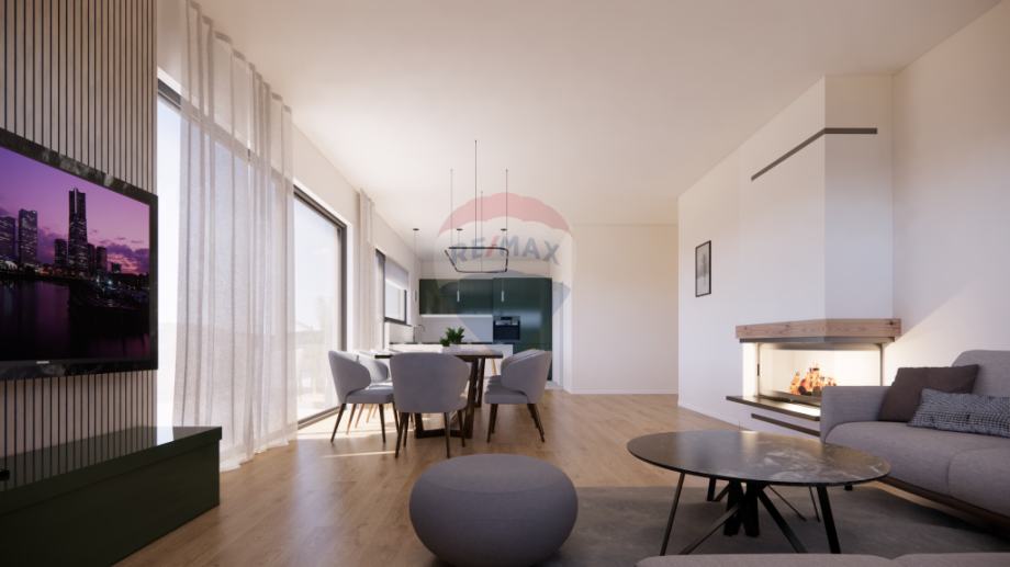 Stan će biti opremljeni kvalitetnom opremom (parketi, sanitarije, drvo-alu stolarija, podno grijanje, protuprovalna vrata, klima, pametni sustav).