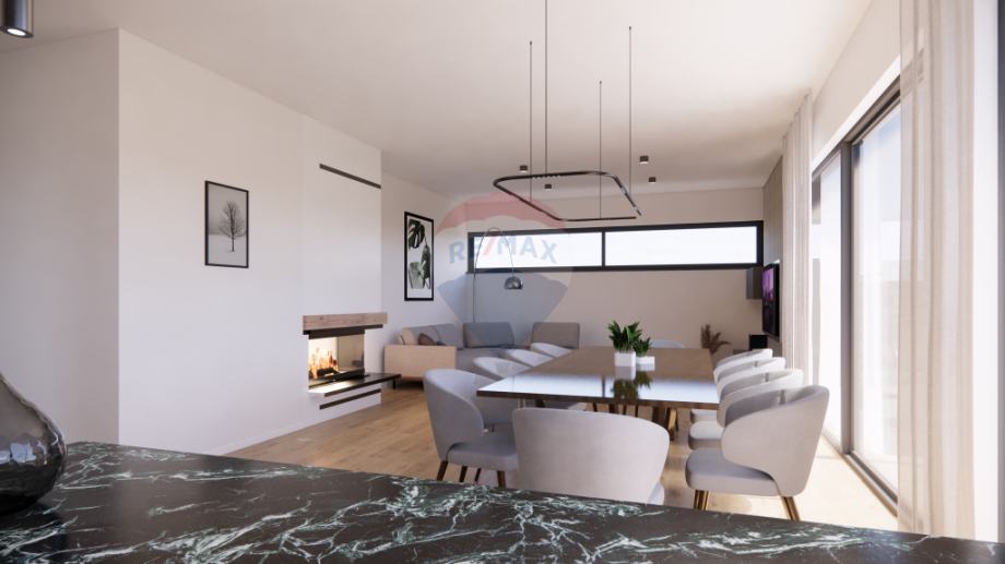 Grijanje, hlađenje i priprema tople vode predviđena je putem nove generacije dizalica topline, a za poseban ugođaj u dnevnom boravku predviđen je kamin.