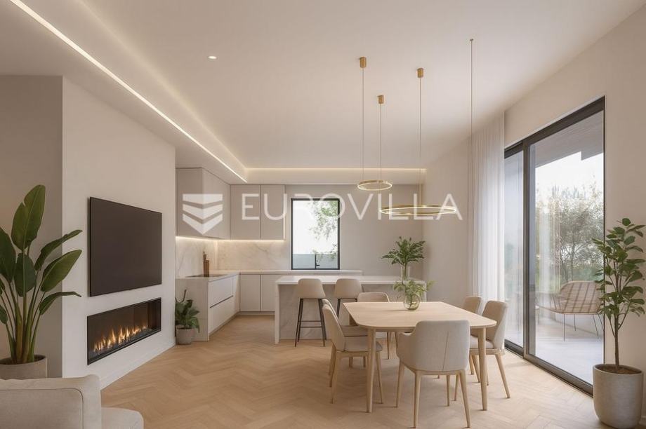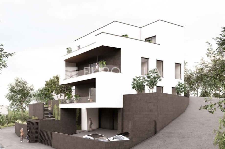 Zagreb, Vrapče, luxurious three-bedroom apartment with a beautiful view of the city on the ground floor of a new building with a total of two floors.It consists of an entrance area (7.10 m2), hallway (6.60 m2), spacious open space concept kitchen, dining room and living room (30 m2) with access to...