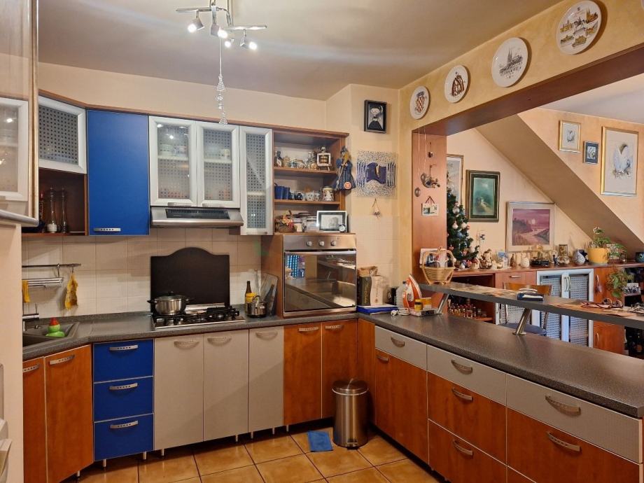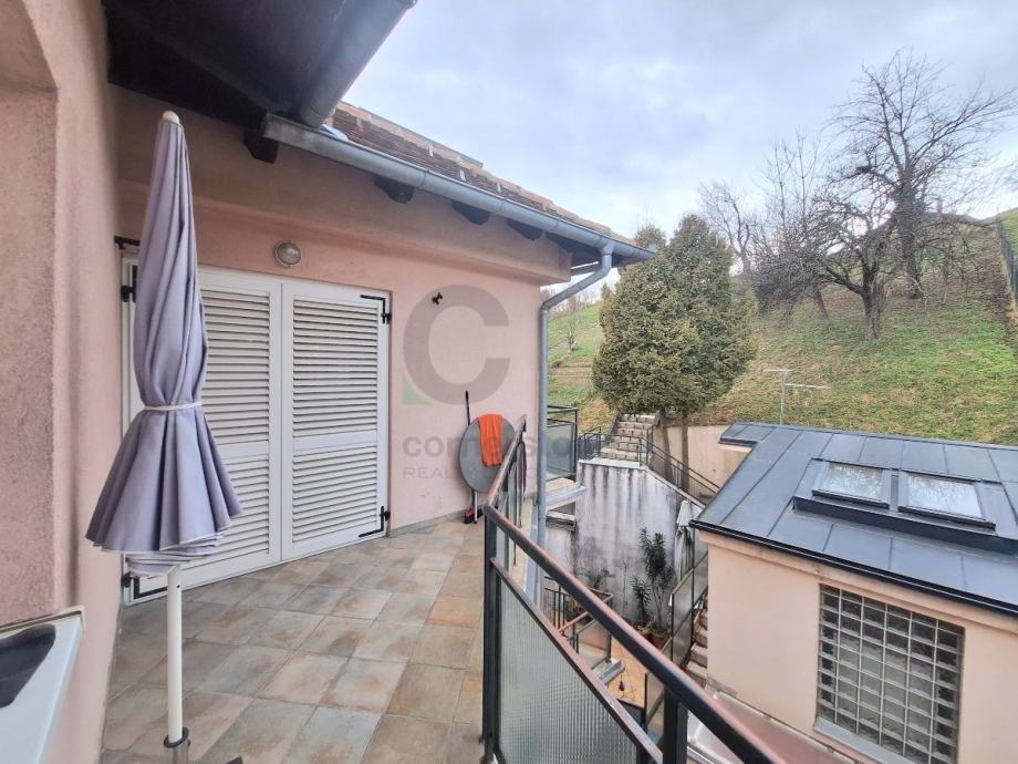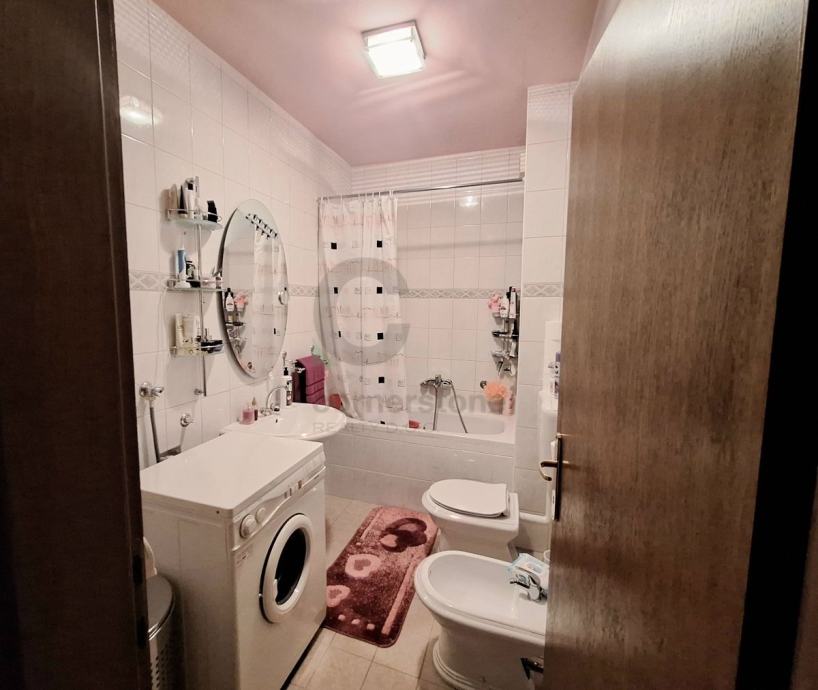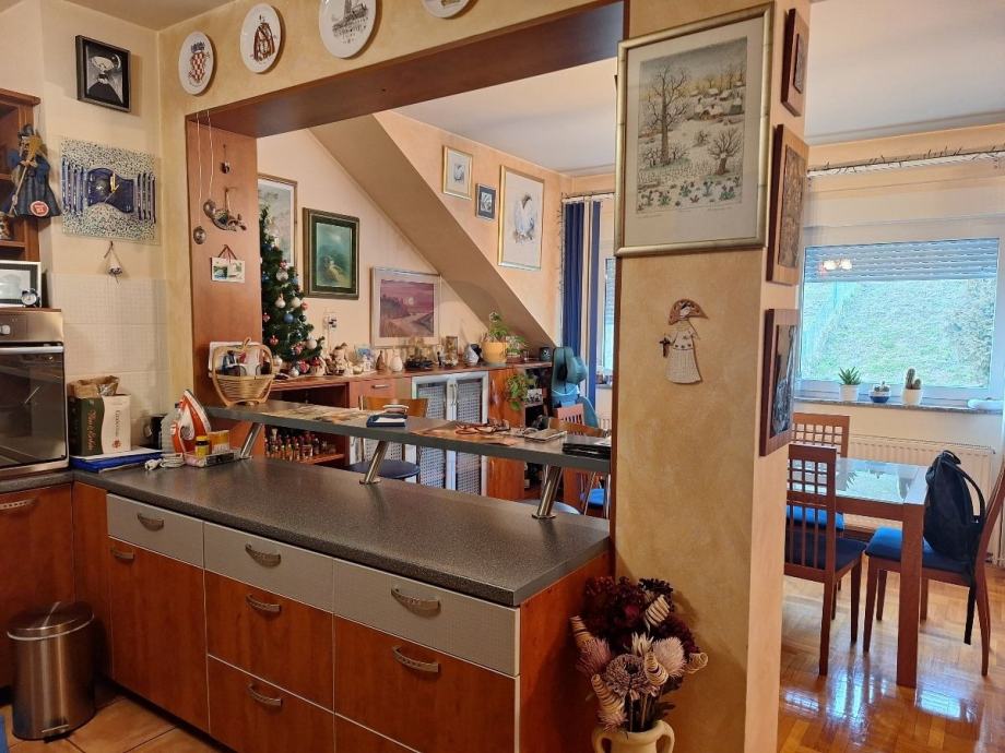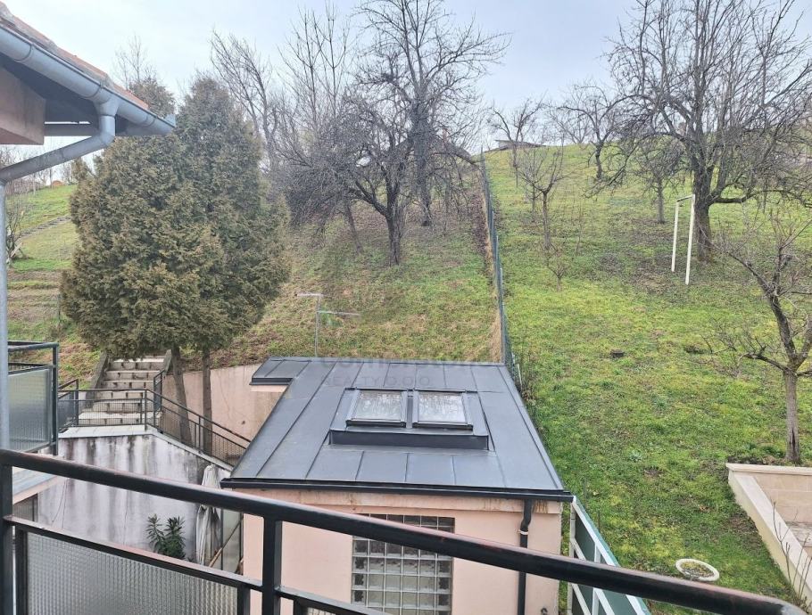 Zagreb, Vrapče - stan od 87,74 m2 na drugom katu zgrade od tri kata s garažom s dva parkirna mjesta (28,61 m2). Sastoji se od velikog open space dnevnog boravka s blagovaonicom i kuhinjom, dvije spavaće sobe, dva hodnika i dvije kupaonice s kadom i toaletom. Stanu pripadaju dva balkona na koje se izlazi iz dnevnog boravka i jedne spavaće sobe (trenutno u funkciji radne sobe).