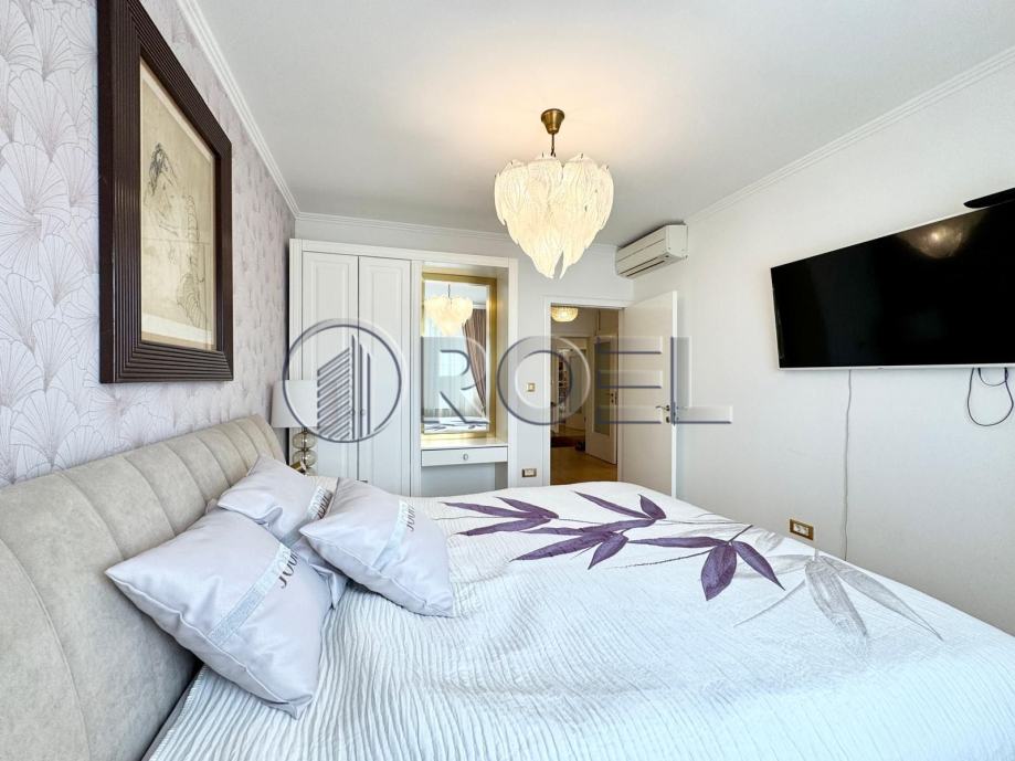 Sastoji se od ulaznog hodnika, dvije spavaće sobe, sobe pretvorene u garderobu, dvije kupaonice, ostave, velikog dnevnog boravka s kuhinjom te blagovaonom, izlazom na loggiu s podnim grijanjem i terasom. Sve sobe su klimatizirane, postavljen je novi parket A klase, te visokokvalitetna keramika i sanitarije u kupaonicama.