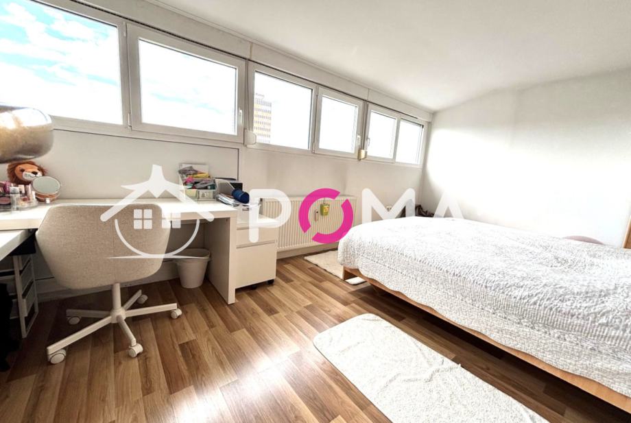 U prodaji je jedinstven, četverosobni penthouse na zadnjem katu zgrade s liftom — stan s panoramskim pogledom, velikom natkrivenom terasom i privatnošću kakvu rijetko gdje možete pronaći u centru grada.