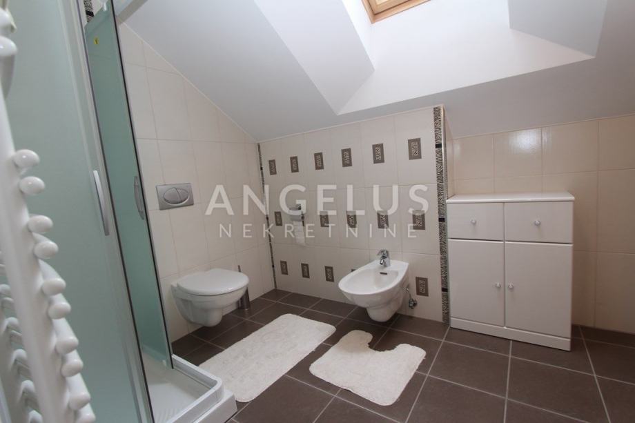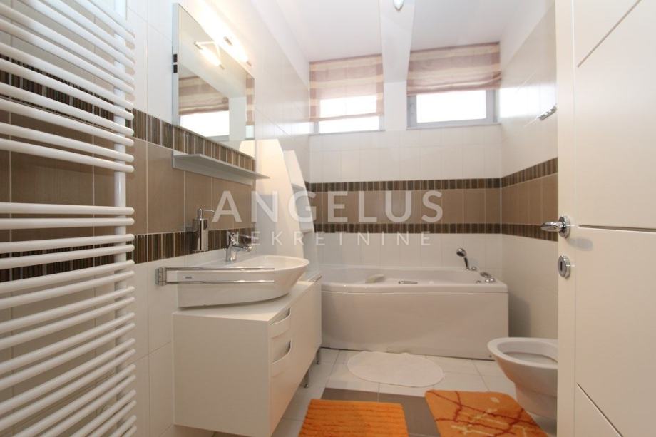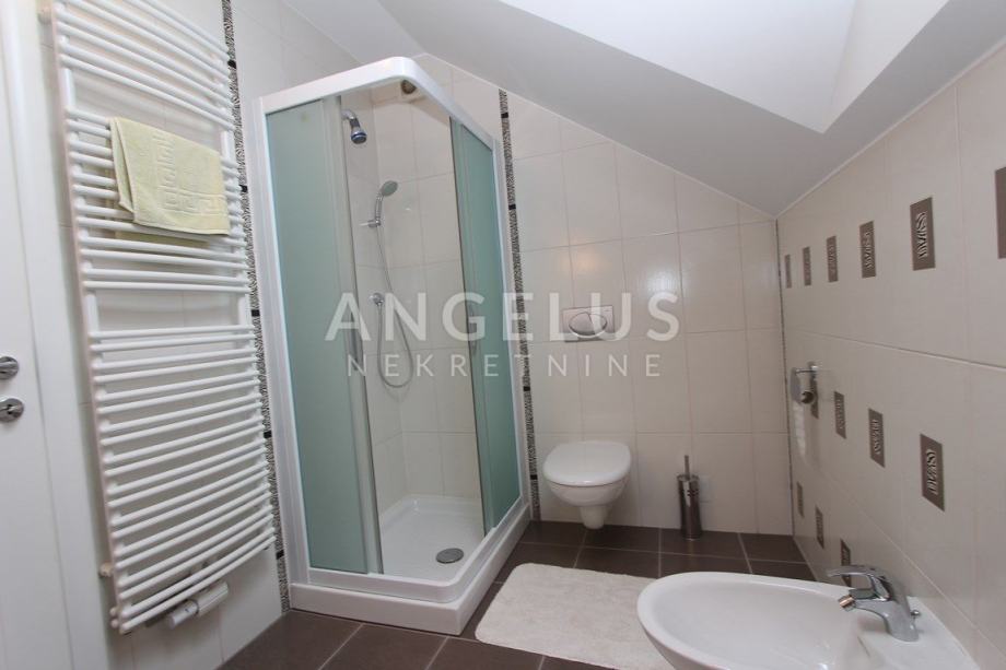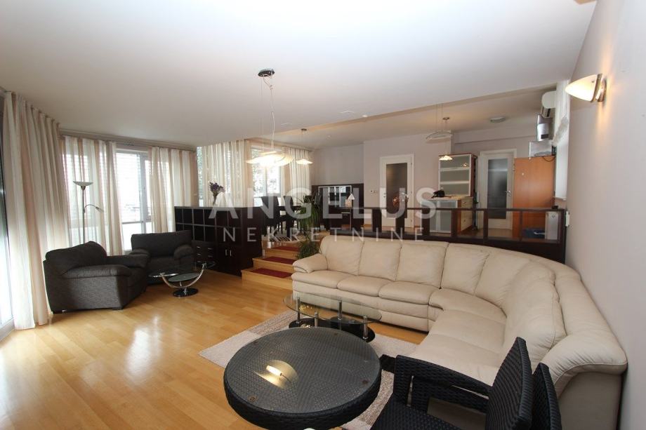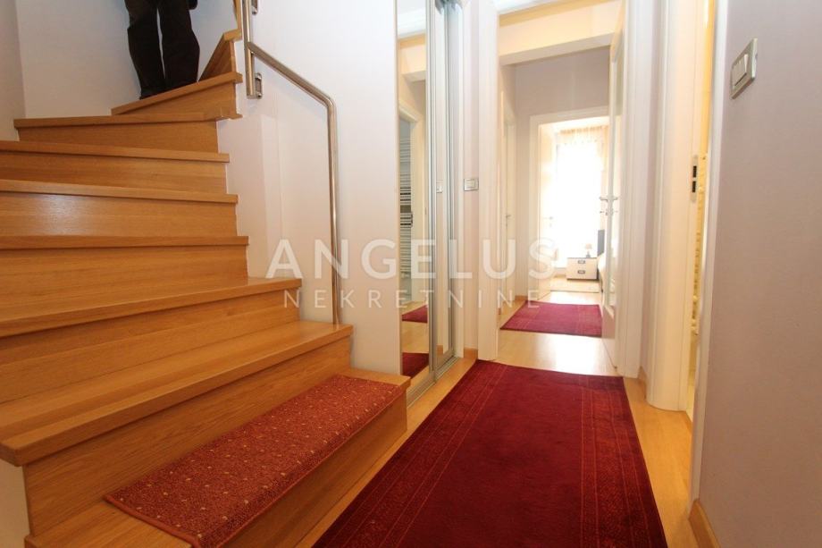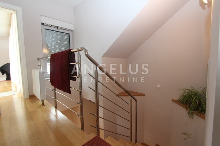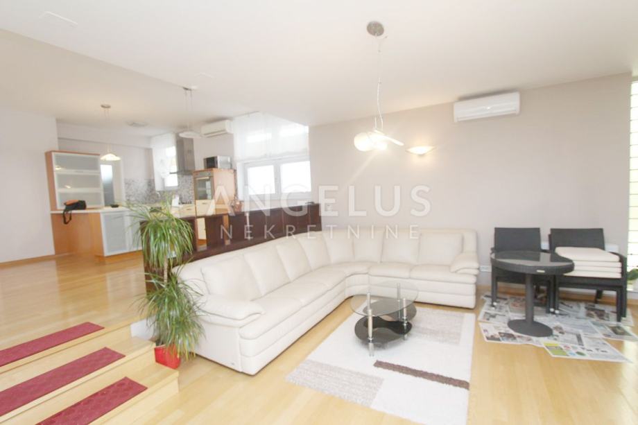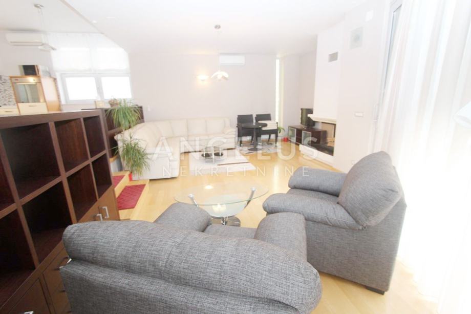 Dvoetažni stan površine 225 m2, nalazi se na prvom katu manje zgrade sa 2 stana. Na prvoj etaži je veliki dnevni boravak, kuhinja, dvije kupaonice, dvije spavaće sobei lođa (23 m2), a na drugoj: dnevni boravak, kuhinja, dvije kupaonice, dvije spavaće sobe, toalet i terasa. Namješten je i ima garažu za 2 auta.