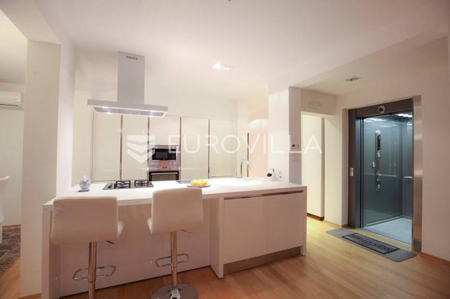 Beautiful, luxuriously furnished and modern furnished two bedroom penthouse 130m2 in a newly built residential building on Vrhovac. Extremely high quality construction, direct elevator to the apartment. Design lighting.Large living room, dining room, kitchen, 2 bedrooms, bathroom, separate toilet....