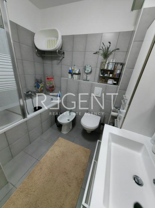 Trosoban stan smješten je na petom katu novije zgrade iz 2016. godine, na odlično povezanoj lokaciji u Novom Zagrebu.Stan je potpuno uređen i opremljen te je namijenjen dugoročnom najmu.Idealan je za parove, manje obitelji ili poslovne korisnike koji traže komforan i funkcionalan prostor bez dodatnih obaveza oko režija.Stan ima ukupnu stambenu površinu od 55 m² te balkon površine 11 m².Sastoji se od dnevnog boravka s kuhinjom i blagovaonicom, dvije spavaće sobe, kupaonice, hodnika i balkona.Veća spavaća soba opremljena je krevetom dimenzija 160 x 200 cm sa spremištem, velikim ormarom i dodatnim ormarićima, dok se manja soba može urediti prema potrebama najmoprimca.U hodniku se nalazi veliki ugradbeni ormar i ormarić za obuću, a stan je opremljen klimom, Wi-Fi mrežom, smart TV-om, perilicom posuđa, perilicom i sušilicom rublja te kompletnim kuhinjskim i kućanskim inventarom.Prije novog useljenja stan će biti dodatno osvježen i obojan, uz djelomične izmjene namještaja prema dogovoru.Lokacija je jedna od glavnih prednosti nekretnine.U neposrednoj blizini nalaze se trgovine, ugostiteljski objekti, teretane i ostali svakodnevni sadržaji.Tramvajska i autobusna stanica udaljene su svega nekoliko minuta hoda te omogućuju brzu i jednostavnu povezanost s centrom grada, a u blizini su i međunarodne obrazovne institucije poput Američke škole i RIT Croatia.Zgrada ima dva lifta, a stanu pripada vlastito garažno parkirno mjesto (12 m2) uključeno u cijenu najma.Pušenje nije dozvoljeno u unutarnjim prostorima, dok kućni ljubimci nisu dozvoljeni.Cijena najma iznosi 1.200 EUR mjesečno, a u cijenu su uključeni najam stana, sve režije, neograničen internet i osnovni TV paket.Najmoprimac nema dodatnih troškova vezanih uz režije.Za više informacija, slobodno nas kontaktirajte.Za više informacija, kontaktirajte našeg agenta na brojeve telefona: