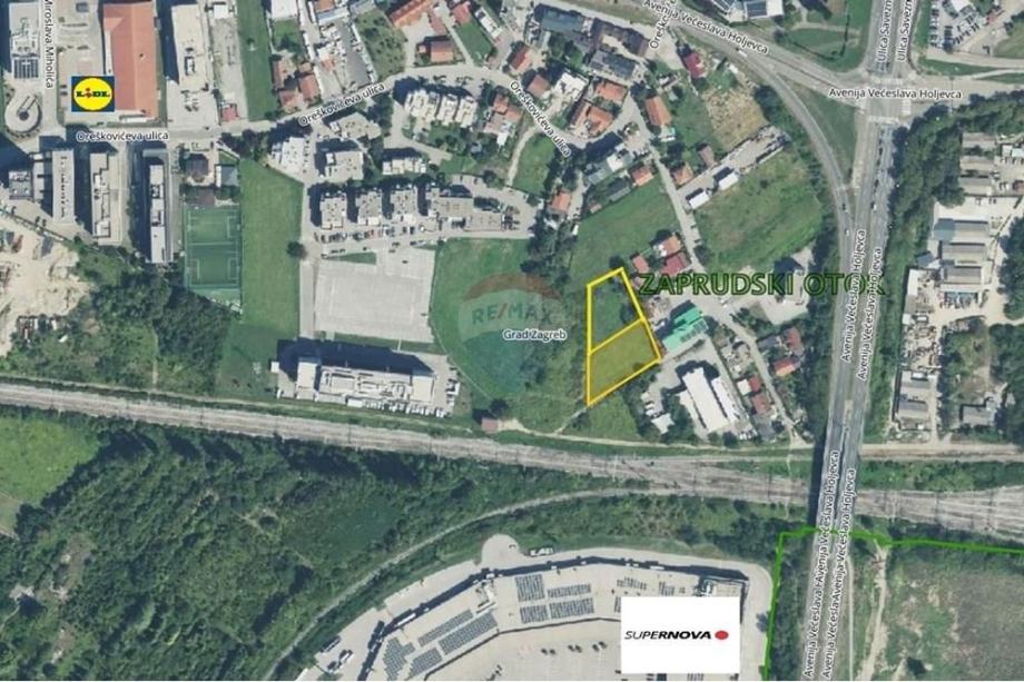 Idealno zemljište za poslovnu investiciju u Zagrebu - dvije spojene parcele ukupne površine 2774 m², smještene u gospodarsko-poslovnoj zoni Novi Zagreb, neposredno (preko puta) Supernova centra Buzin.