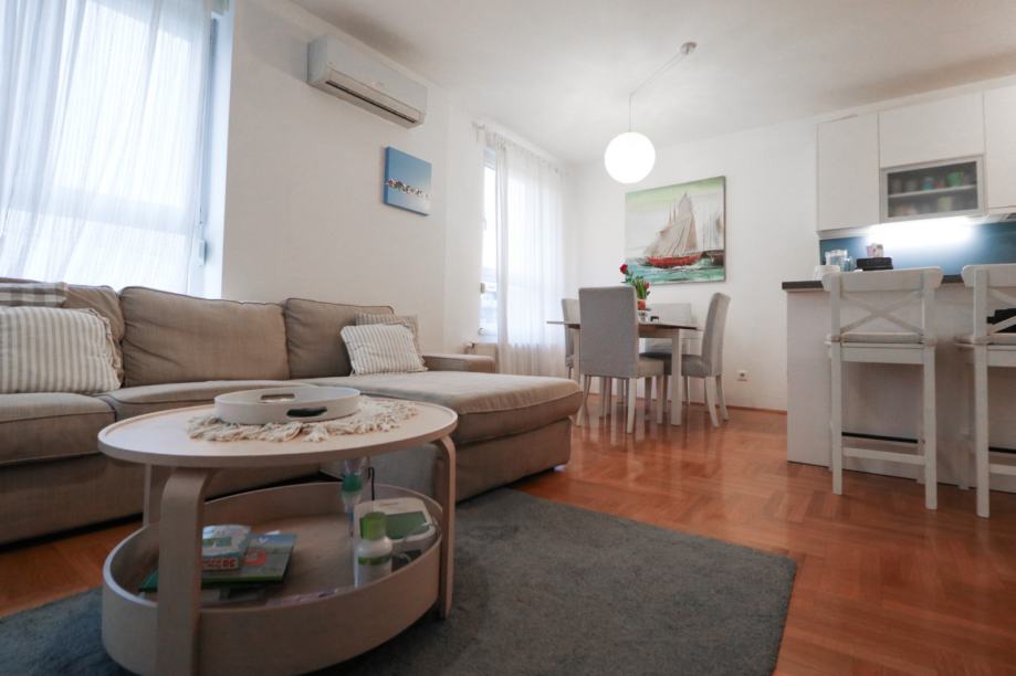 Stan je opremljen protuprovalnim vratima, klimom, pvc stolarijom, kuhinja je opremljena svim aparatima. Grijanje je na toplanu, sva brojila su odvojena pa se režije plaćaju prema stvarnoj potrošnji.