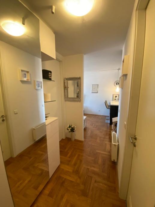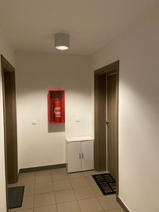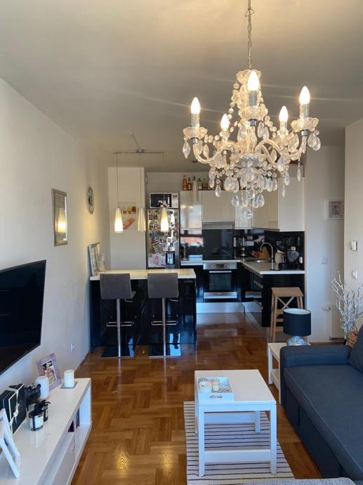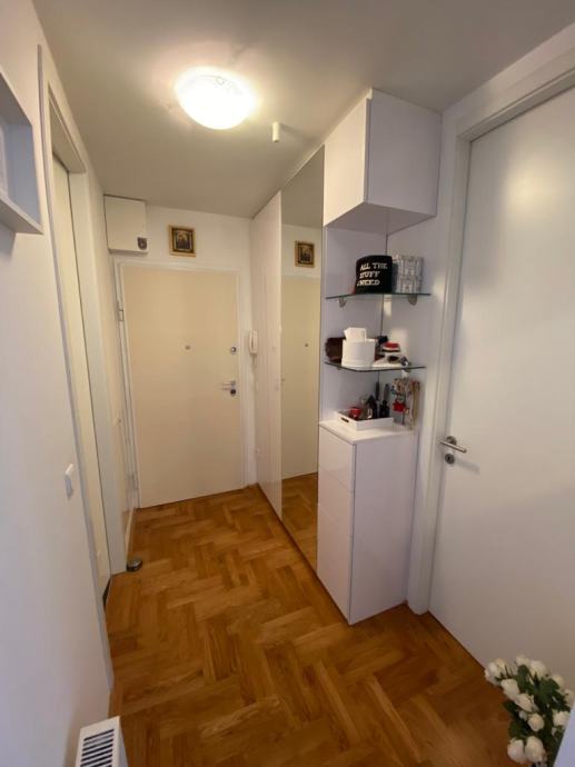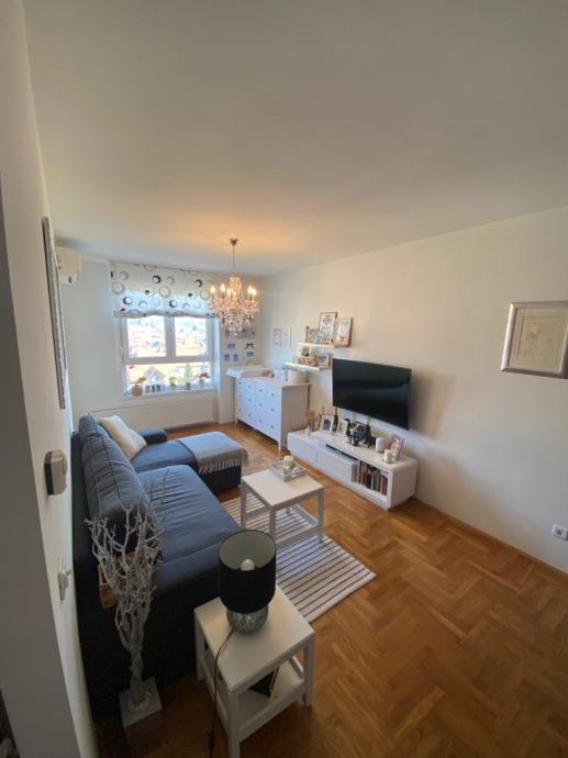 Iznajmljujem stan površine 45 m2, novija zgrada, na adresi Zagrebačka cesta 128. Stan se nalazi na šestom katu od ukupno osam katova s 3 lifta. Stan se sastoji od: predsoblja, dnevnog boravka sa blagavaonicom i kuhinjom, spavaće sobe i kupaonice s wc-om. Stan je u potpunosti opremljen kućanskim aparatima (perilica posuđa, staklokeramička ploča, klima, perilica rublja, mikrovalna pećnica, hladnjak). Grijanje putem toplinske stanice ITPS (novi moderni sustav koji koristi toplinsku energiju toplane/pare, 30% jeftinije od klasičnog grijanja putem toplane, vlastito brojilo prema potrošnji, dovod direktno iz toplane, neovisno od ostalih stanara). Zgrada posjeduje vlastiti agregat koji se automatski pali u slučaju nestanka struje. Ispred zgrade prolazi autobusna linija 134 (Črnomerec okretište-Prečko), dok je u blizini autobusna linija 114 (Trg Mažuranića centar-Voltino) i stanica vlaka Kustošija. Uz zgradu se nalazi trgovački centar Kaufland.