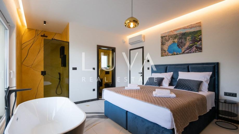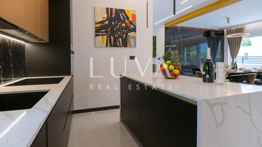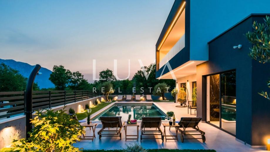 Prodaje se luksuzna vila od 295m2 s bazenom u Zagvozdu. Vila je smještena na mirnom dijelu okružena zelenilom, a nalazi se na posjedu površine 450m2 koji je potpuno ograđen te osigurava privatnost. Modernog je dizajna i prostire se na 2 etaže te sadrži 4 spavaće sobe od kojih svaka ima vlastitu kupaonicu. Vila ima mnogo dodatnih sadržaja kao što su vanjski bazen, koš za košarku, sauna, Jacuzzi…
