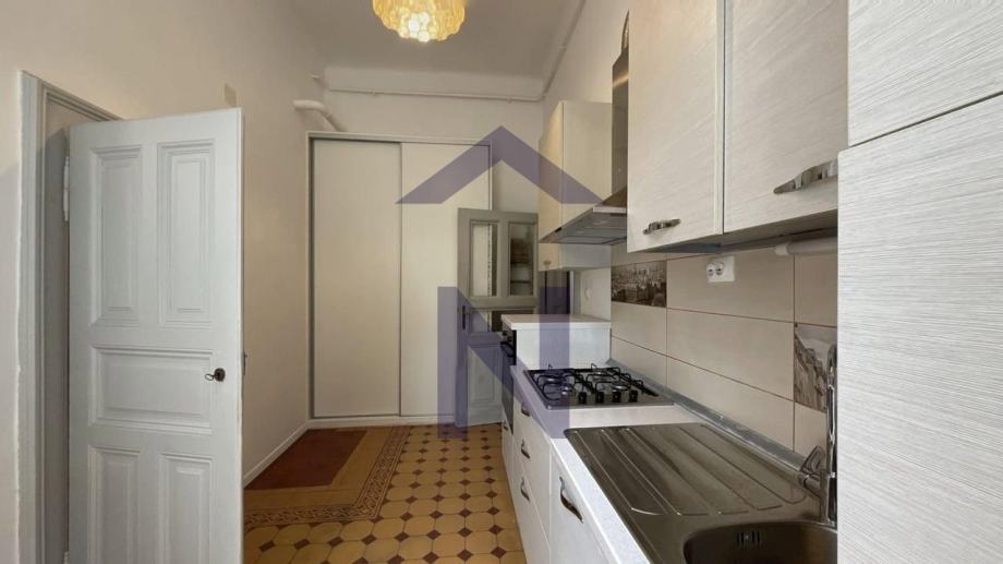 Iznajmljuje se s opremljenom kuhinjom te ima štednjak, napu, hladnjak sa zamrzivačem.