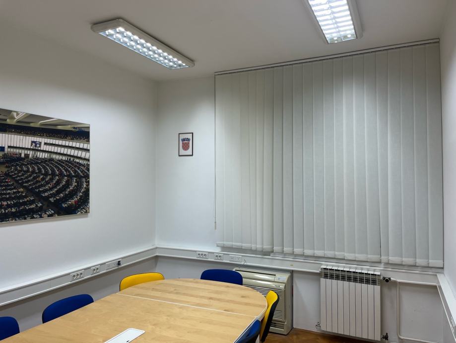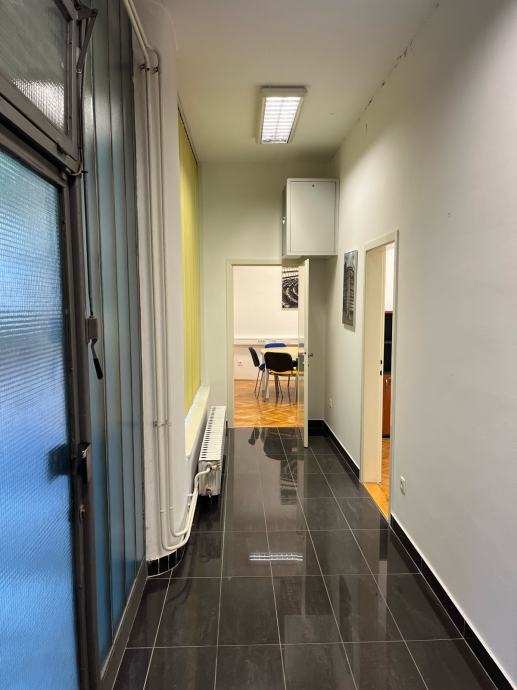 Iznajmljuje se kompletno namješten uredski prostor ukupne brutto površine 71m2 u prizemlju zgrade s vlastitim odvojenim ulazom na adresi Trpimirova ulica 9, Zagreb.