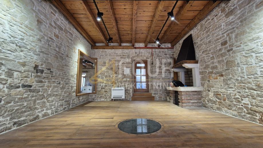Prostor odiše posebnim šarmom zahvaljujući drvenom interijeru i dominantnom kaminu smještenom u kutu, dok kutna ogledala i pažljivo odabrani detalji stvaraju ugodnu i toplu atmosferu. Veliki izlog pruža odličnu vidljivost prema glavnoj cesti, a prostor je klimatiziran i opremljen kvalitetnom stolarijom, keramikom i parketom.