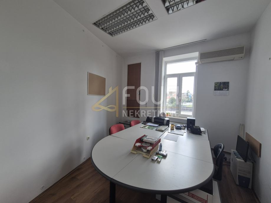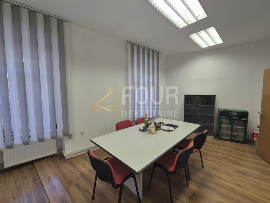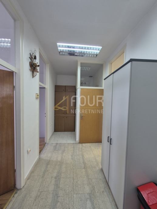 Površine je 53.64 m2, sastoji se od tri funkcionalne prostorije i pogodan je za uredsku djelatnost.