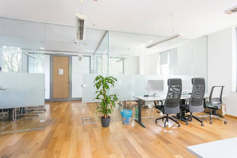 Prostor, sjeverozapadne orijentacije, trenutno ja pregrađen na tri prostorije staklenim stijenkama-mogućnost preinake prema potrebama zakupodavca.