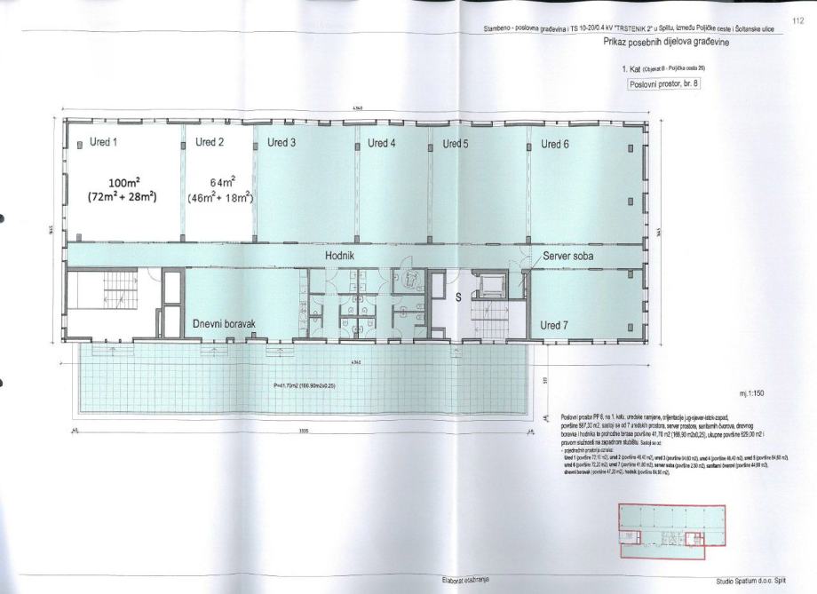 Zakup-Split: prostor površine 100m2 na 1. katu poslovne zgrade (iznajmljivanje)