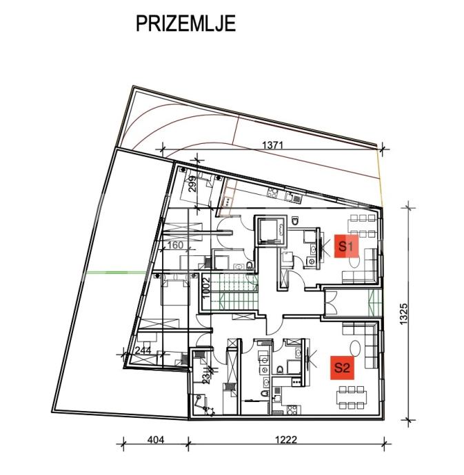 S2 - Dnevni boravak, kuhinja i blagavaonica, dvije kupaonice, tri spavaće sobe ukupne površine 85 m2 + terasa 45 m2
