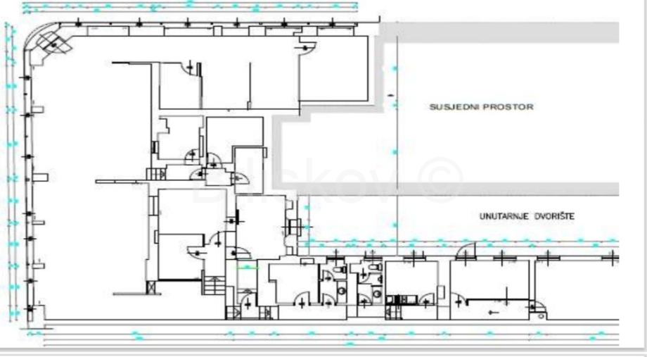 Iznajmljuje se prostrani poslovni prostor površine 370 m2, uvećan za skladišni prostor površine 80 m2 u prizemlju.