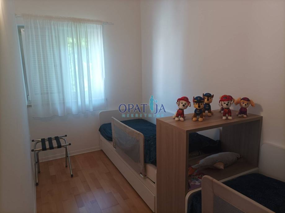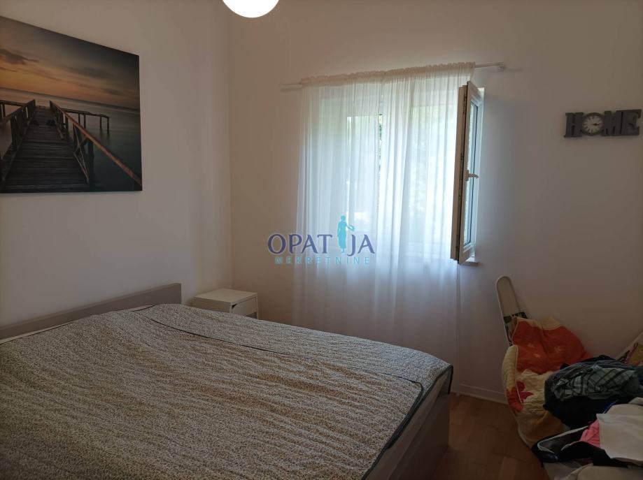 Dvije spavaće sobe, kuhinja s blagovaonicom i dnevnim boravkom, veća i manja terasa te kupaonica nalaze se na donjoj etaži, na gornjoj je spavaća soba s kupaonicom, a u suterenu zgrade nalazi se spremište. Parkirno mjesto je pored zgrade. Stan je kompletno namješten, opremljen, svijetao, klimatiziran, spreman za ugodan ljetni odmor, turistički najam ili cjelogodišnje stanovanje.