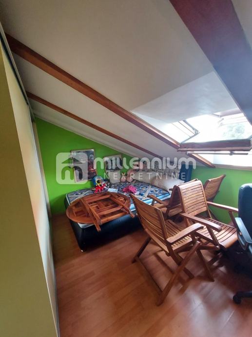 Stan se nalazi na drugom katu i potkrovlju manje stambene zgrade te nudi funkcionalan raspored i obilje prirodnog svjetla.