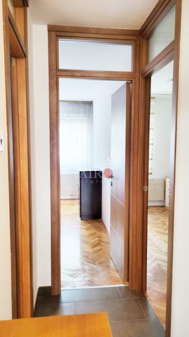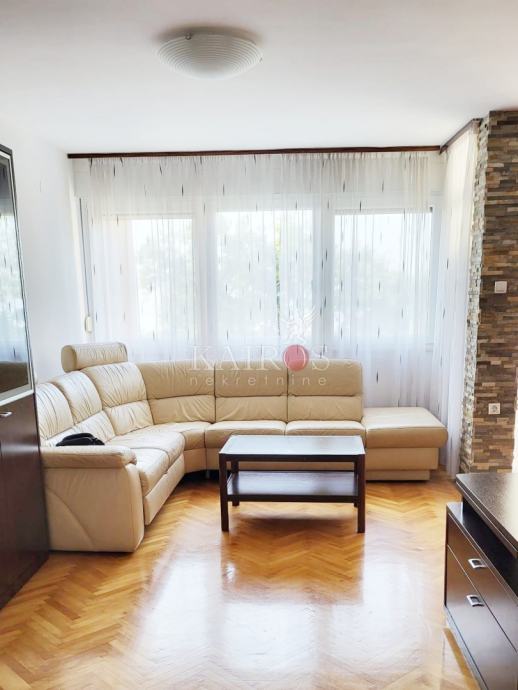 ZAMET, iznajmljujemo stan površine 68 m2, dvosoban s dnevnim boravkom, stan na visokom prizemlju stambene zgrade. Stan se satoji od hodnika, dnevnog boravka, kuhinje, dvije spavaće sobe, kupaonice i lođe. Kompletno je namješten. Pogodan za obitelj.