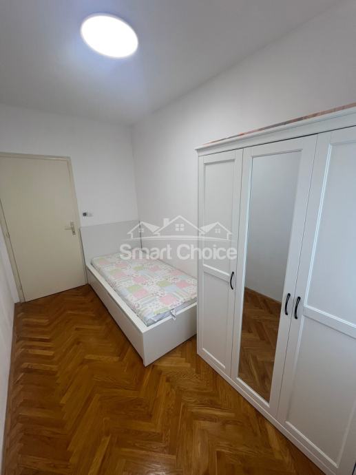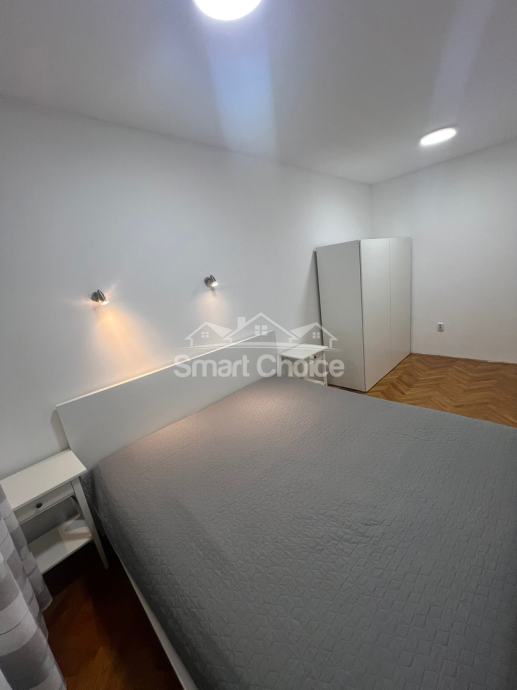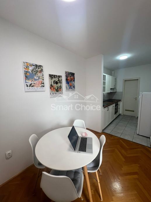 Gornji Zamet-2s+db na odličnoj lokaciji u novijoj zgradi sa garažnim parkirnim mjestom. Stan se sastoji od 2 spavaće sobe, dnevnog boravka s izlazom na balkon, kuhinje s blagovaonom, kupaone i ostave. Grijanje na klimu i mramorne ploče. Stan je topao i troškovi nisu veliki. Kompletno nov i nekorišten namještaj.