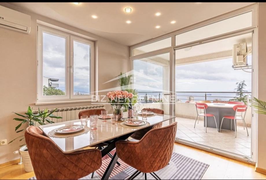 Stan od 80 m2 se nalazi na 3 katu i sastoji se od dvije sobe, 2 kupaone, ostave, dnevnog boravka, kuhinje, balkona sa pogledom na more.