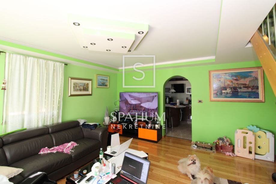 ZAMET, u ponudi imamo dvoetažan komforan stan površine 109 m2. Kuhinjski namještaj i namještaj u dnevnom boravku su u cijeni stana. Na donjoj etaži su smješteni dnevni boravak, kuhinja i blagovaona, spavaća soba i kupaonica. Iz dnevnog boravka je izlaz na balkon s kojeg se pruža pogled na more. Na gornjoj etaži, mansardnog tipa, dvije su spavaće sobe, kupaonica te manja radna soba ili sobica za razne namjene. Manja zgrada sa 6 stanova, vrlo uredna i ugodna. Blizina svih sadržaja. Prostran obiteljski stan.