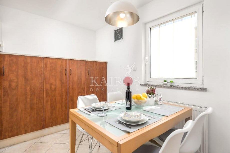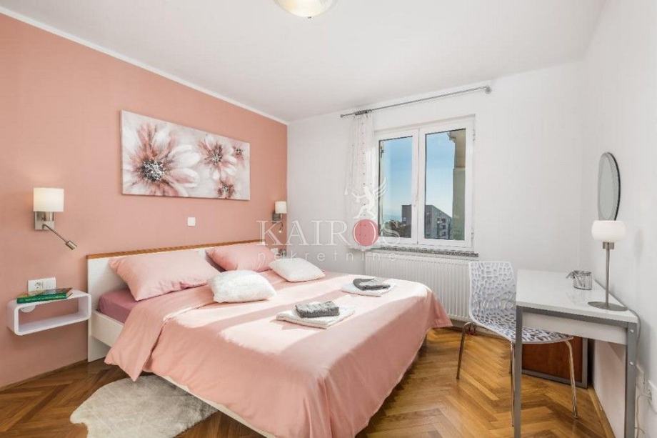 ZAMET, iznajmljujemo kompletno uređen i namješten stan površine 60 m2, jednosoban s dnevnim boravkom i balkonom na jug s pogledom na more. Zadnja adaptacija je bila prije 2020. godine. Stan se nalazi na 2. katu novije sagrađene zgrade, ima centralno grijanje, klima uređaj.